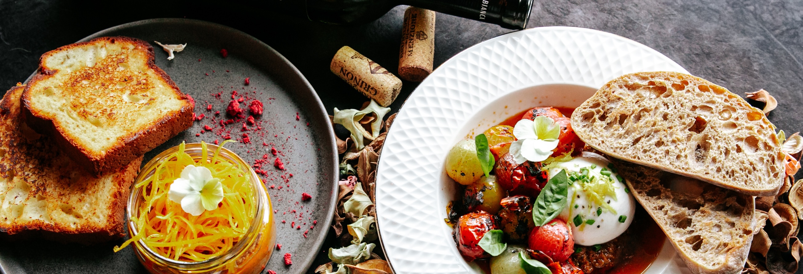 Veisetartar, viin, kapparid,päikesekuivatatud tomatid,sinepiseemned, šalottsibul, vürtsikaskaste, sojakastmes soolatudmunakollane, tilli ja küüslaugu aioli,krõbe brioche